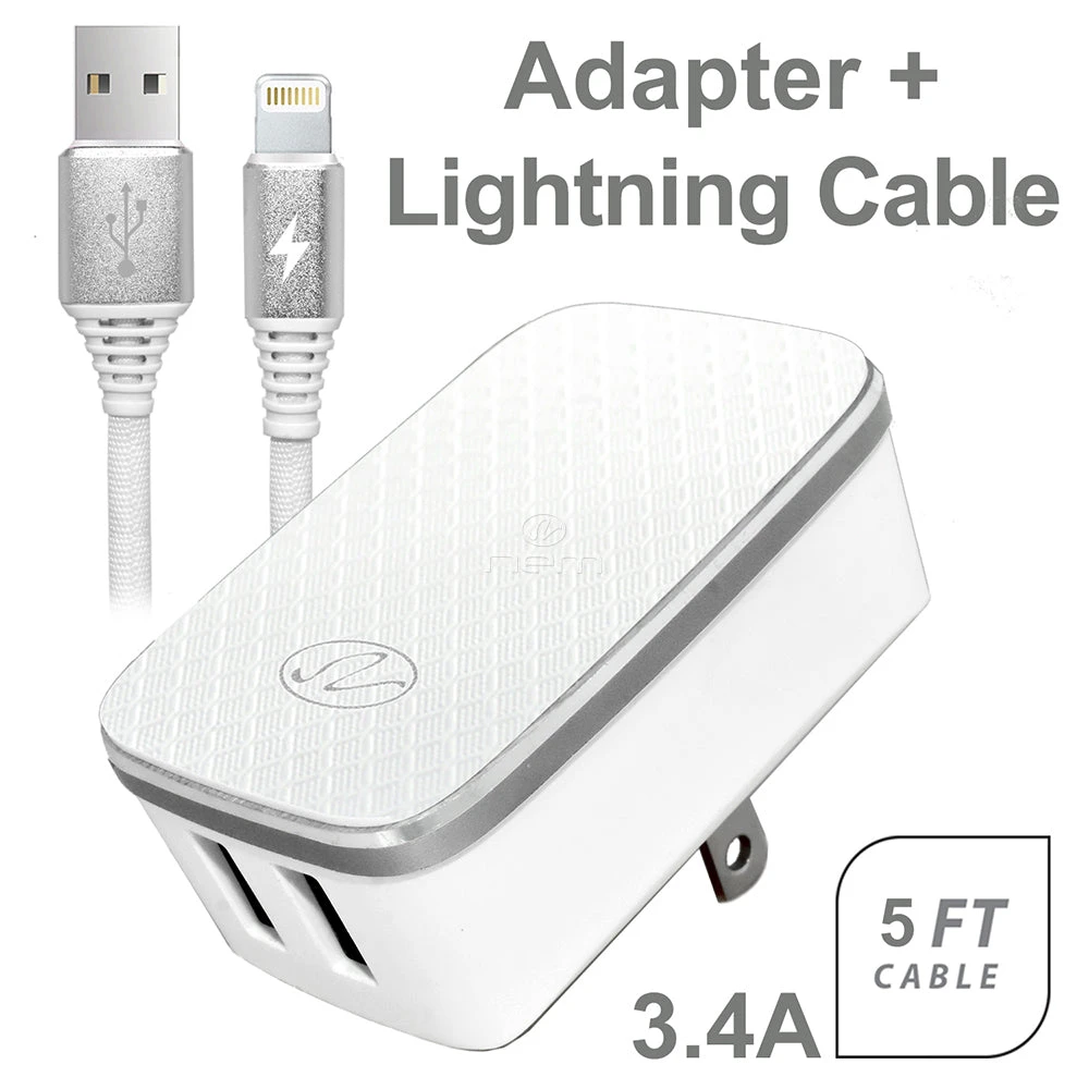 2in1 Universal Dual Port Travel Charger 3.4A Lightning