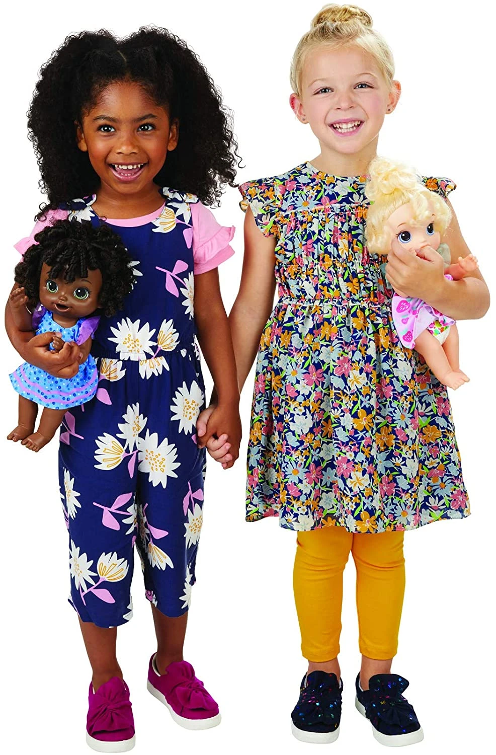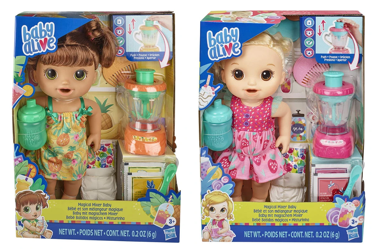 Mix in the MAGICThis doll comes with everything kids need for a magical mealtime-playtime: a working toy blender, 2 packets of doll food mix, spoon, bottle, and 2 diapers! From mixing, to feeding, to changing baby’s diaper when she “pees” and “poops,” kids will love playing with Baby Alive Magical Mixer Baby! |
