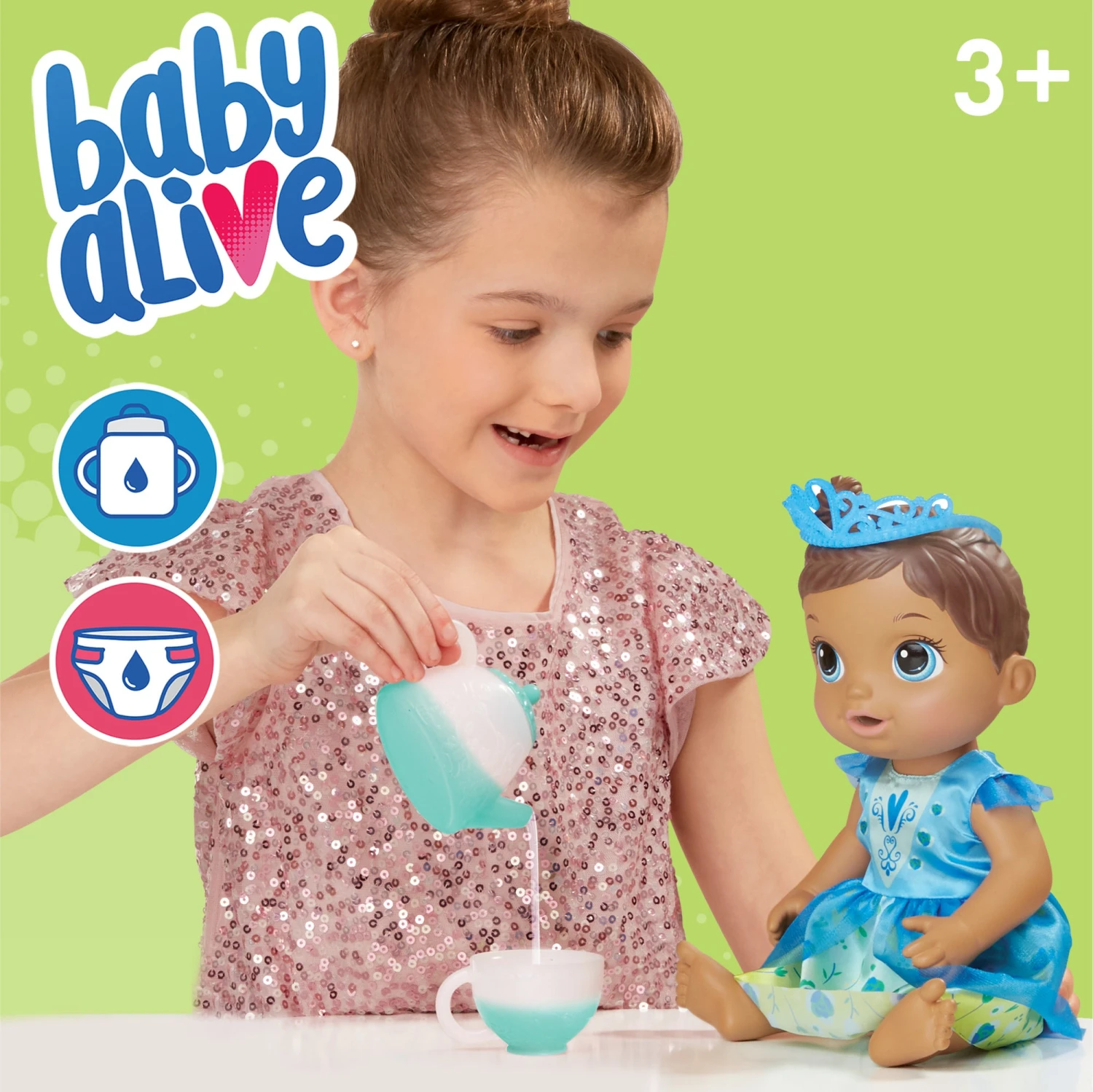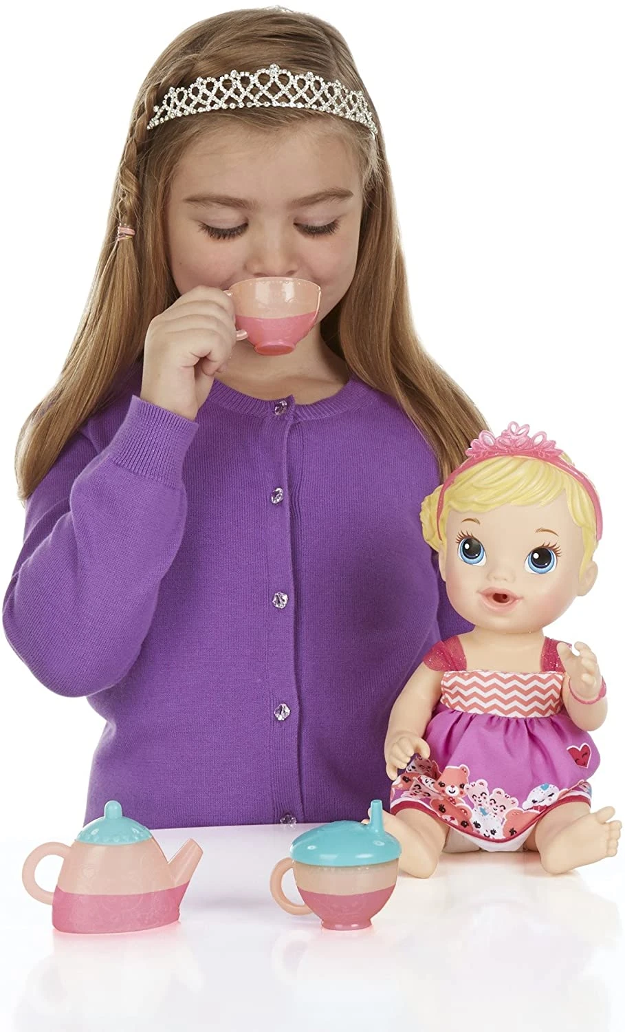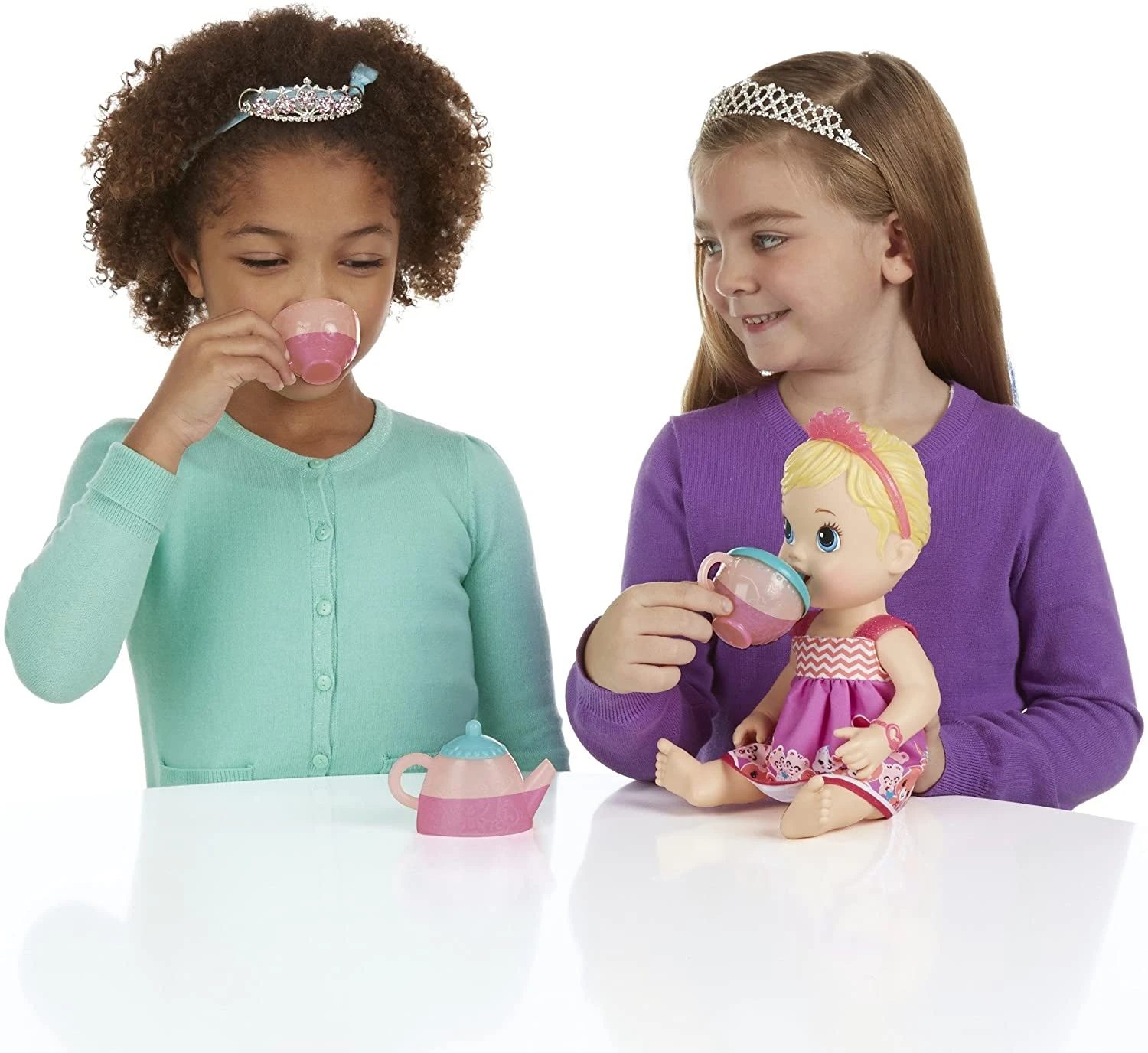 - A PRINCESS-THEMED TEA PARTY FOR TWO: Kids will want to invite all of their friends to imagine a fancy tea party with Baby Alive Tea ‘n Sparkles Baby doll!
