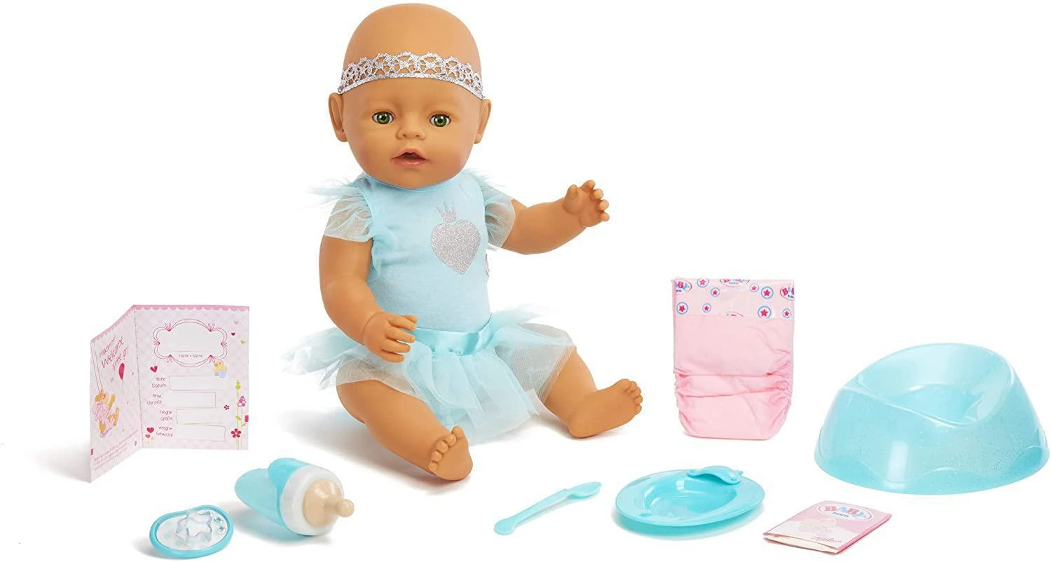 - Baby Born features an adorable baby doll with 9 lifelike features