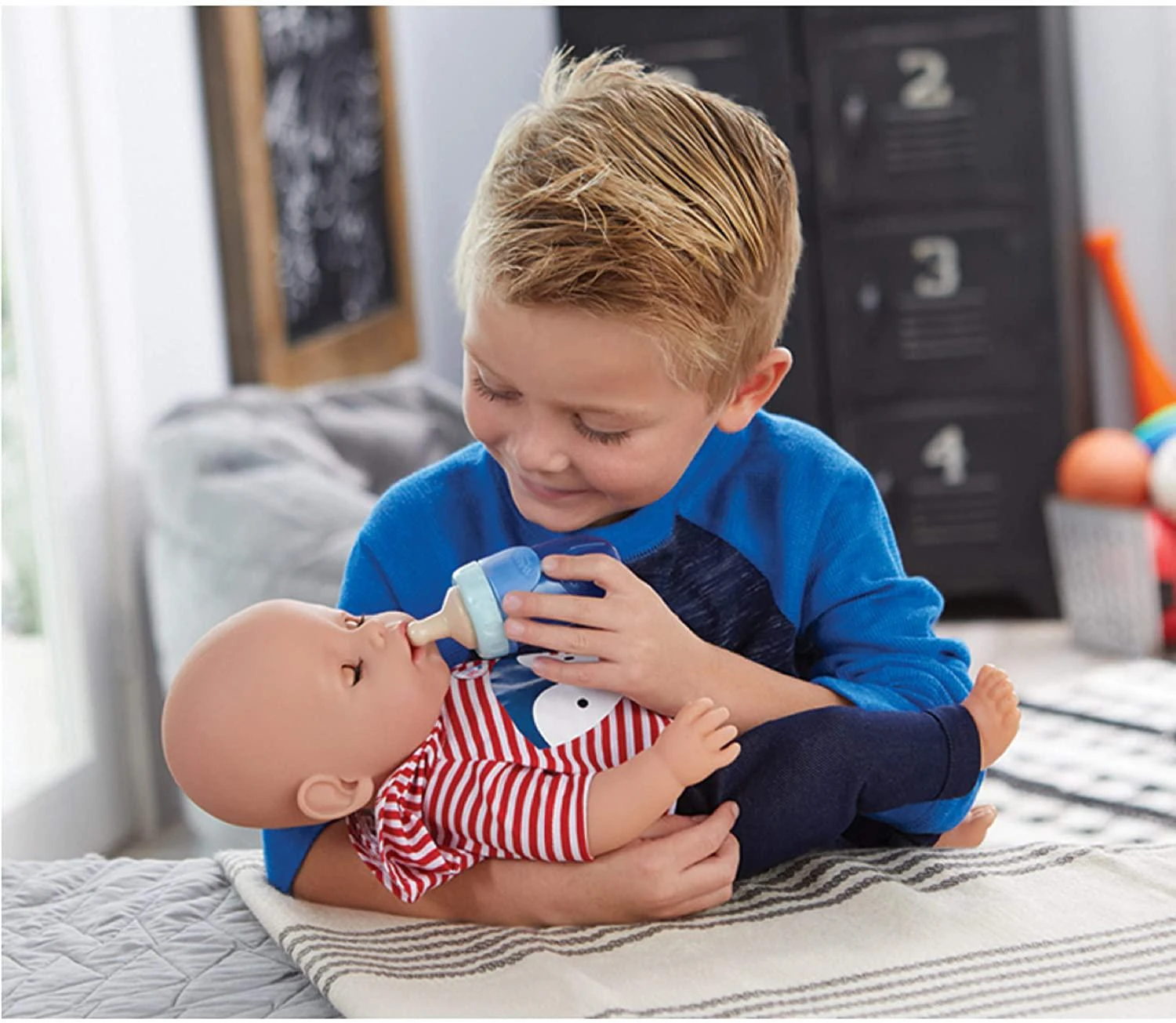 Your doll’s 9 lifelike features will make it feel like you’re taking care of a real baby. Baby born can eat, drink, cry, sleep, bathe, move, pee in her diaper, or go potty by controlled peeing and pooing. All without batteries!