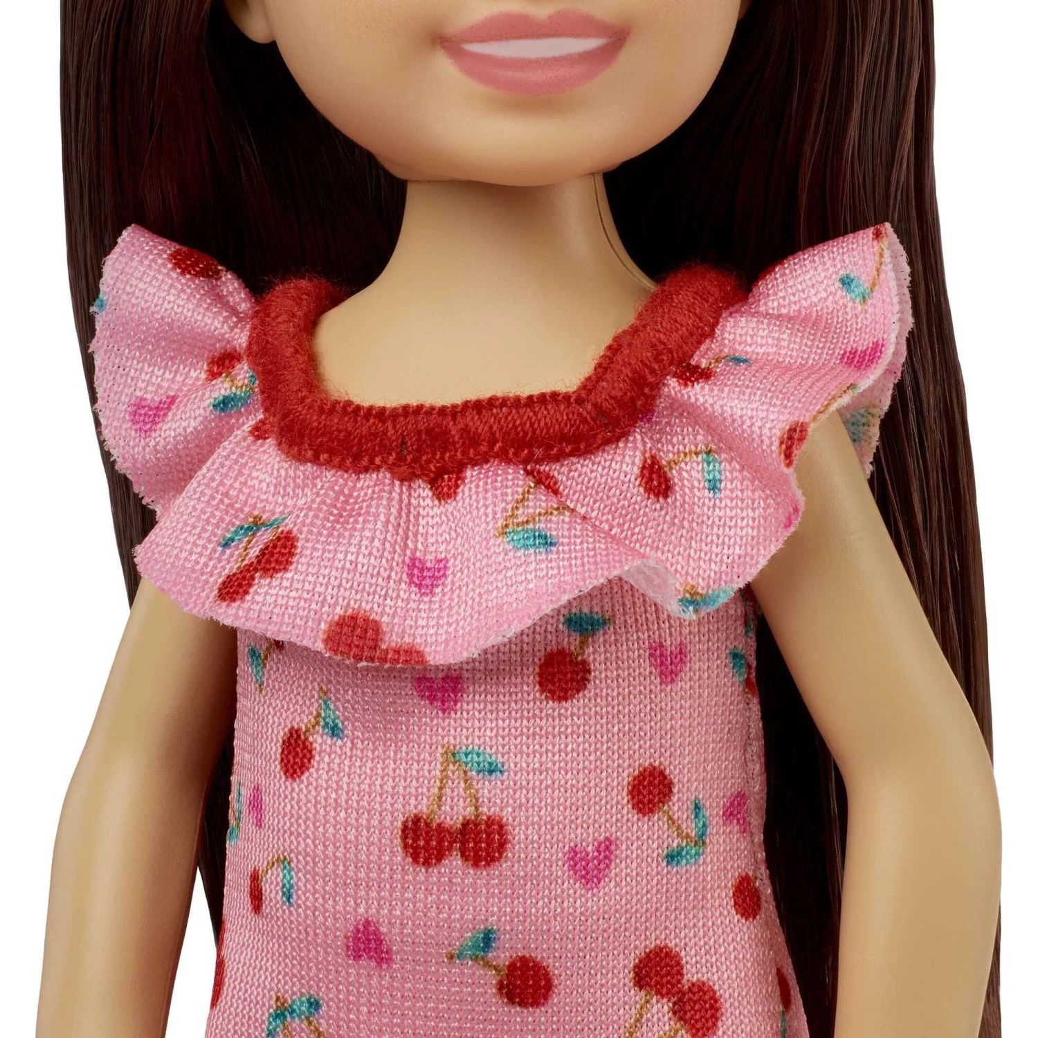 Barbie Chelsea Doll (Brunette) in Cherry-Print Dress