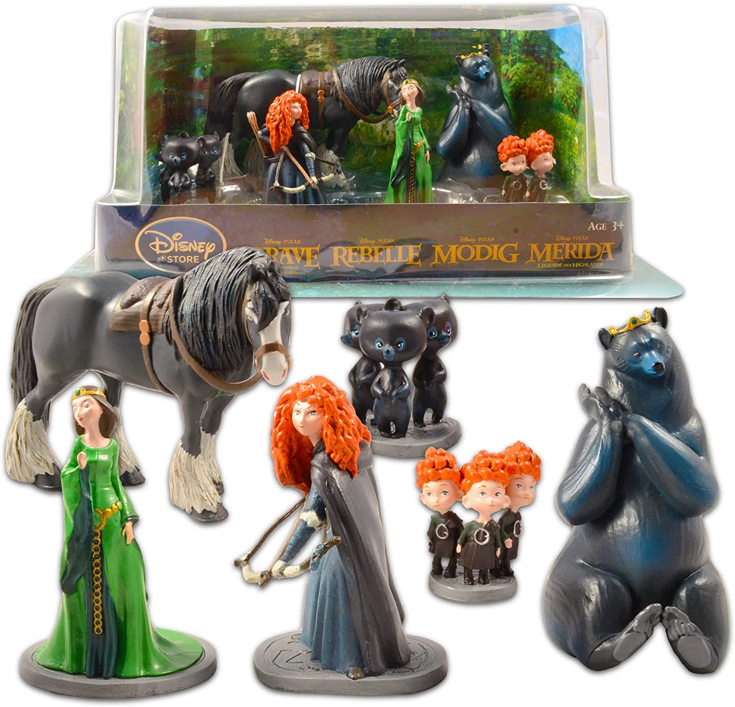 Your little valiant one will be on target for fun with this set. The wonderfully detailed set includes Merida, Queen Elinor, Triplet Boys, Triplet Cubs, Mumbear, and Angus the horse so every champion can recreate their favorite scenes in any highland empire.
