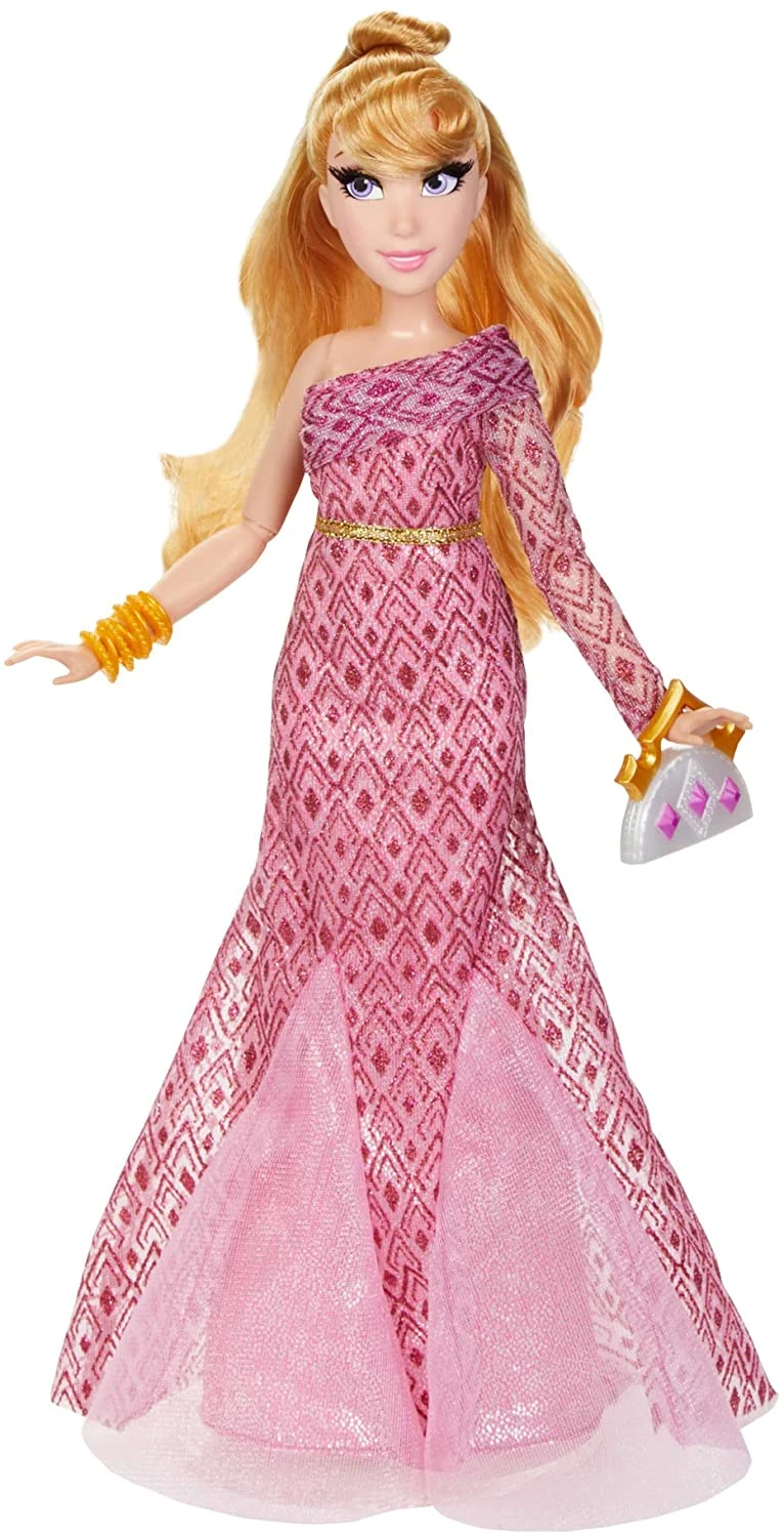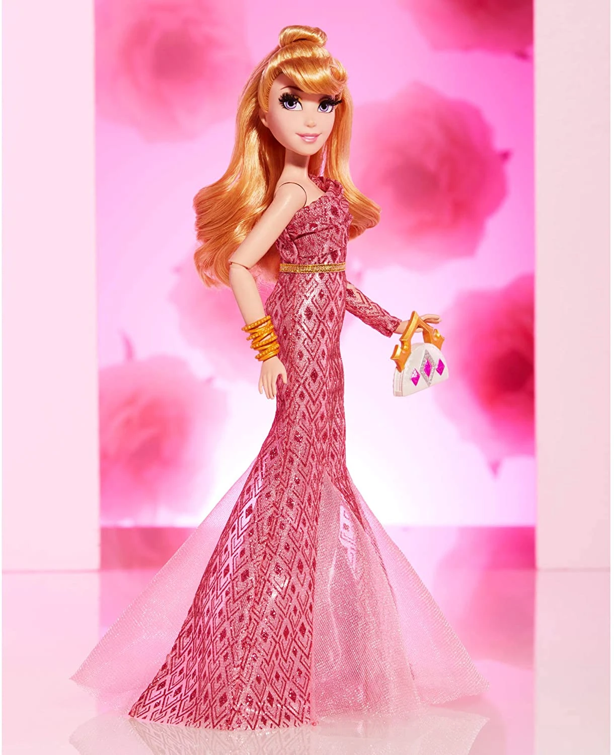 - GOREGOUS GOWN AND ACCESSORIES IN TODAY’S STYLE: The Style Series Aurora doll comes beautifully dressed in a shimmering pink dress with removable shoes and bracelet
