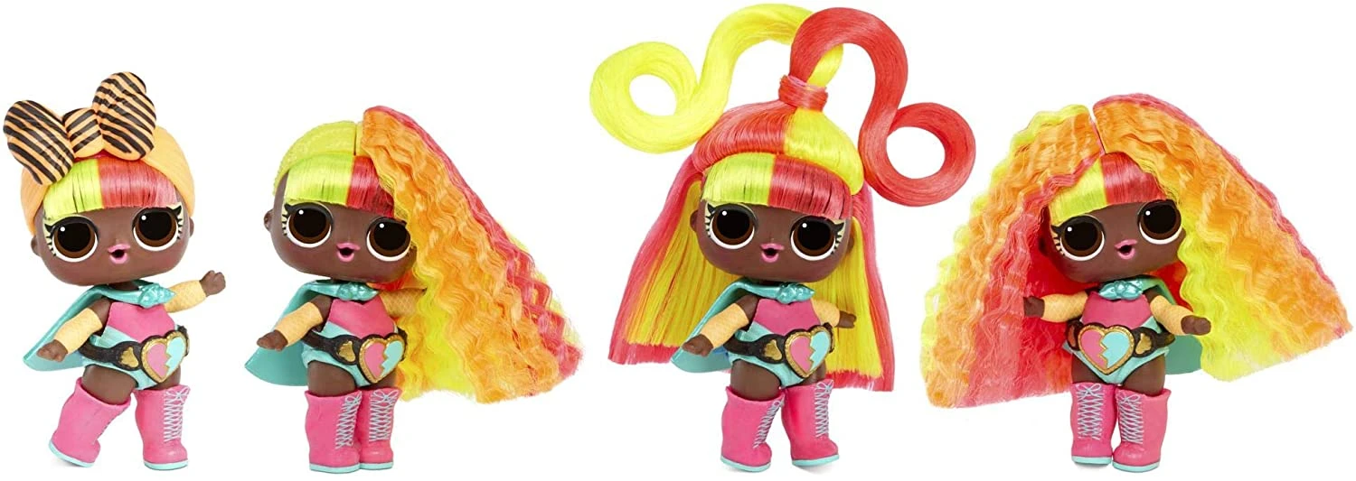 Design your own fierce, custom hairstyles with L. O. L. Surprise! #hairvibes. Unbox 15 surprises, including mix & match wig pieces to create so many hairstyles. Each doll comes with 3+ real hair wig pieces in unique styles. Will you find curls, pigtails, crimped waves or a fab updo? Mix & match two wig pieces at a time by sticking them onto your doll’s head in different ways to create a fierce hairstyle. Also includes 4 plastic wig pieces for even more Looks. Wig pieces are easily removed and reattached, so you can update your doll’s style again & again. Easily place wig pieces on front and back or side to side! Every #hairvibes doll has an outrageous color change surprise! Bathe doll in water for a unique color change look! Collect all 12 L. O. L. Surprise! #hairvibes characters, Each with their own amazing, mix & match hair. Wig pieces work on all #hairvibes dolls, so collect them all to create even more outrageous, unique hairstyles! Each doll includes 15 surprises: (1) secret message; (2) bottle; (3) hair wrap; (4-7) plastic wig pieces; (8-10) 3+ real hair wig pieces; (11) comb; (12) fashion accessory; (13) outfit; (14) shoes; (15) L. O. L. Surprise! #hairvibes doll. Each L. O. L. Surprise! #hairvibes doll includes an all-new unboxing experience in a giant L. O. L. Surprise! ball.