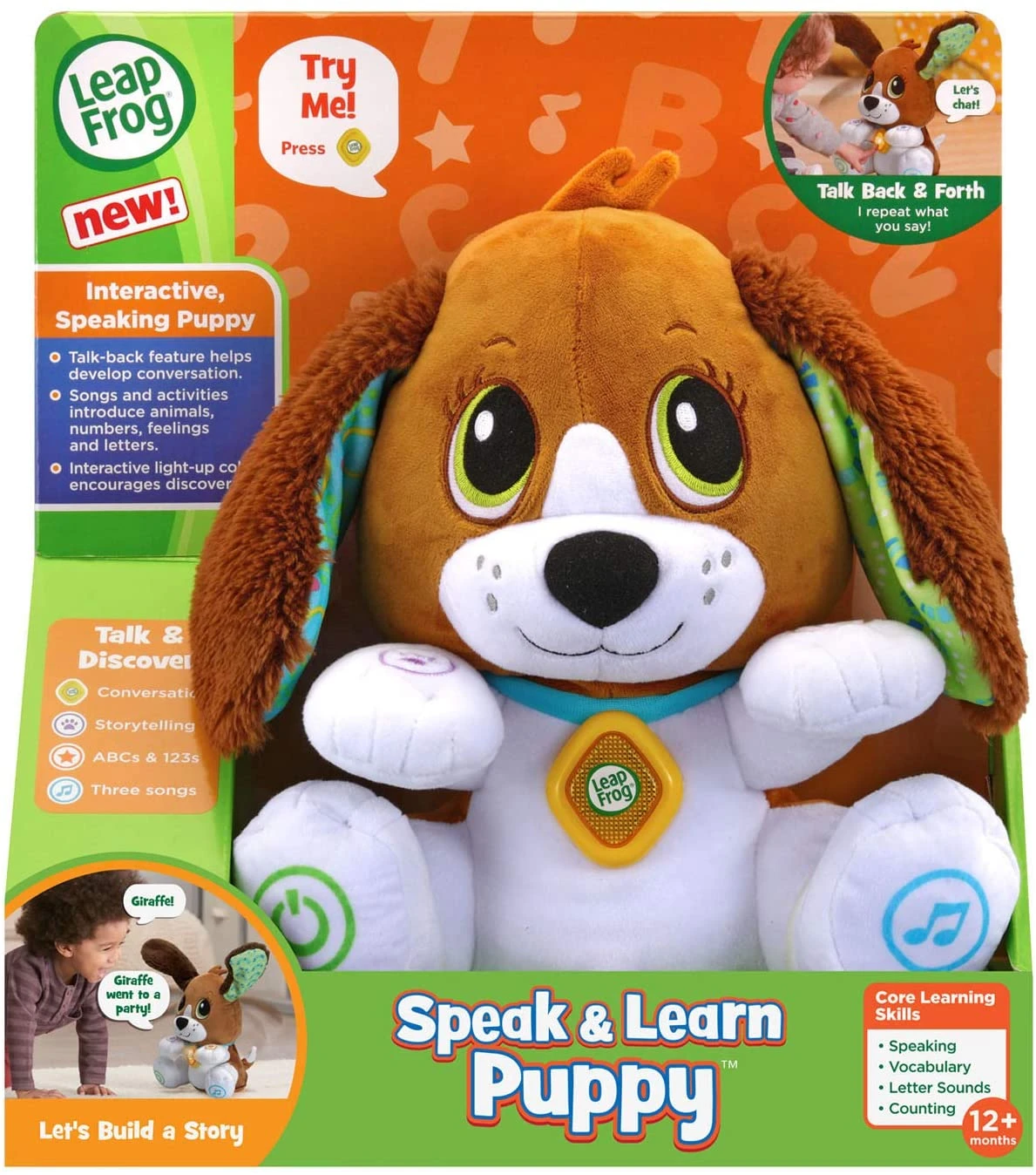 “The Speak & Learn Puppy encourages conversation by repeating what your child says in an amusing and playful voice. This fun interaction encourages back-and-forth conversation between the child and the puppy. There are three levels of language play from repeating words, to answering questions, to creating stories using their own voice.” Tiffany Sakaguchi, LeapFrog Learning Expert