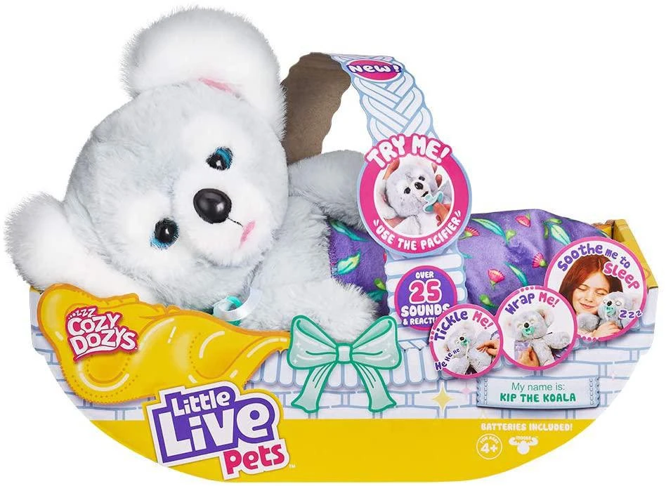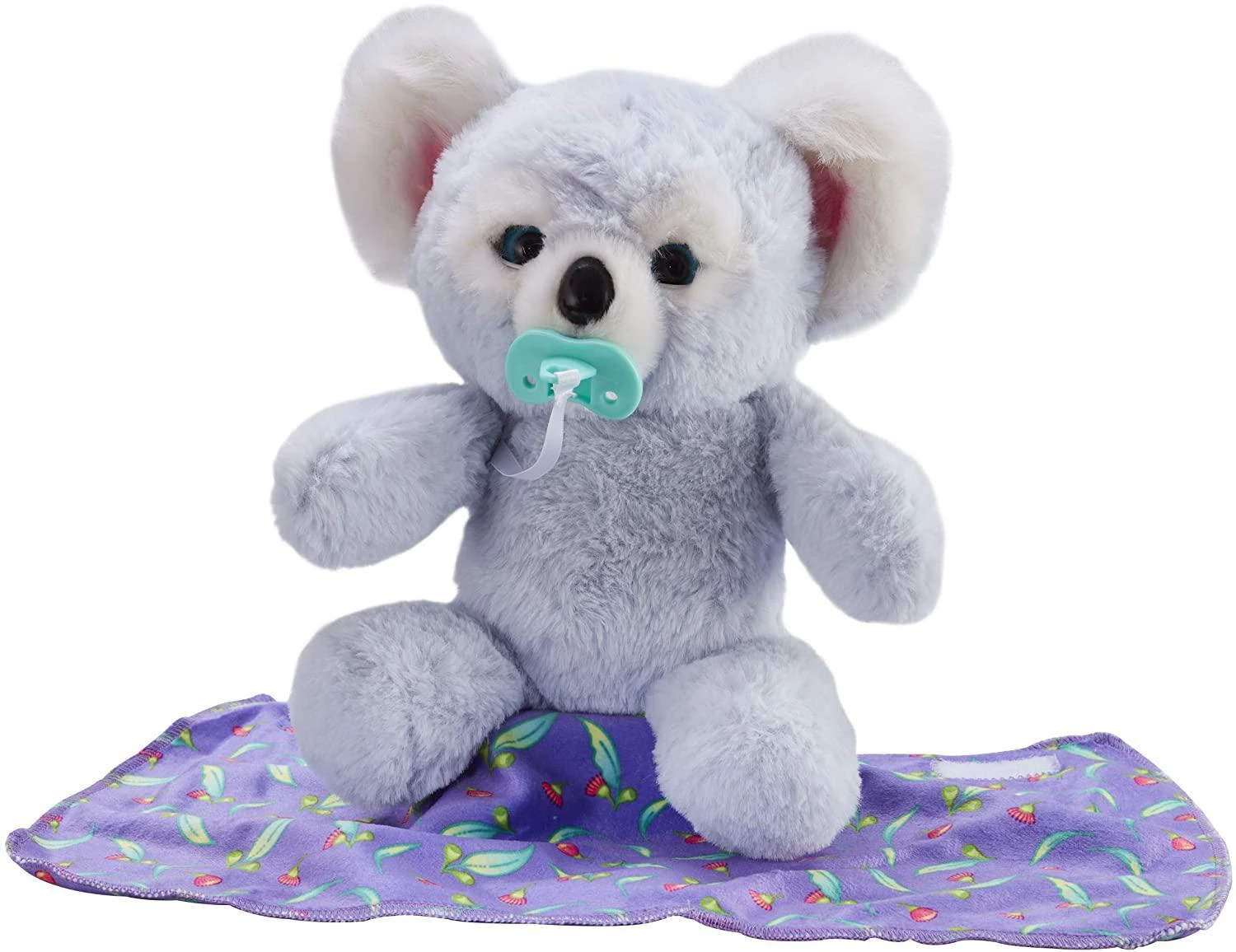 The more times you tickle him, the longer he’ll laugh! Kip the Koala has over 25 different sounds and reactions! He comes with his own pacifier and adorable snuggly wrap blanket.