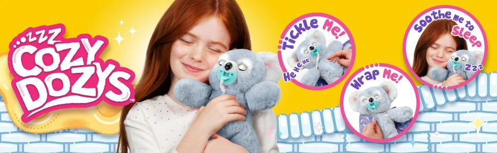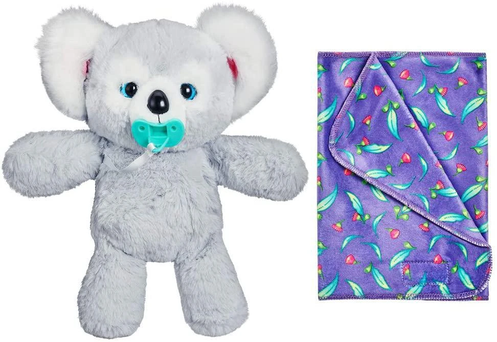 Kip the Koala is your “Down Under” slumber friend. With dreamy soft fur, he’s your perfect bedtime buddy. Soothe him to sleep by wrapping him up in his soft, warm blanket. Place the pacifier in his mouth, he will start sucking and close his eyes and you will hear him fall gently to sleep! Remove his pacifier and he will open his eyes and make cute sounds! Kip loves cuddles! Pet his head and he will blink his eyes and make happy sounds. He also loves to be tickled! Scratch Kip’s belly and make him giggle.