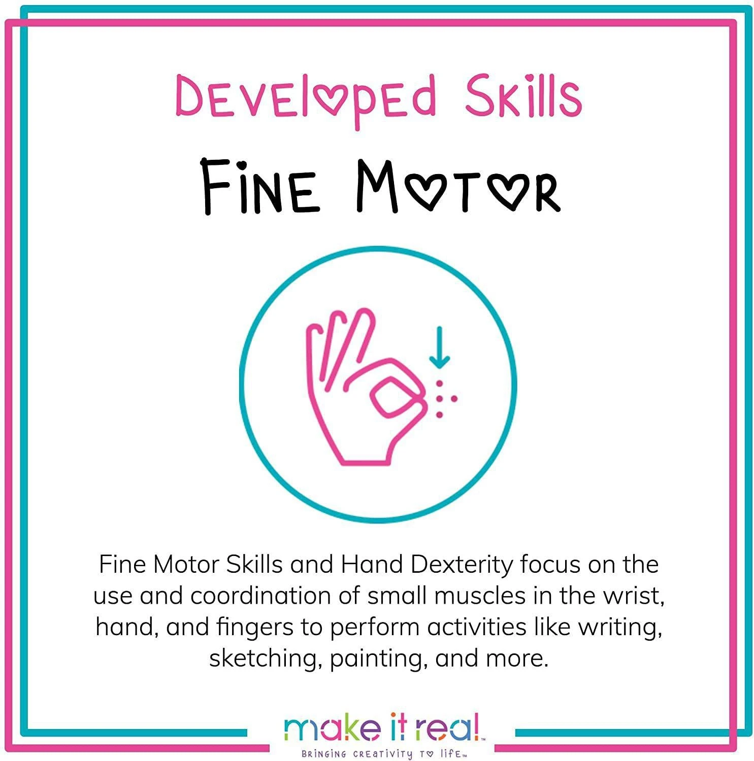 Fine Motor SkillsFine Motor Skills and Hand Dexterity focus on the use and coordination of small muscles in the wrist, hand, and fingers to perform activities like writing, sketching, painting, and more. |