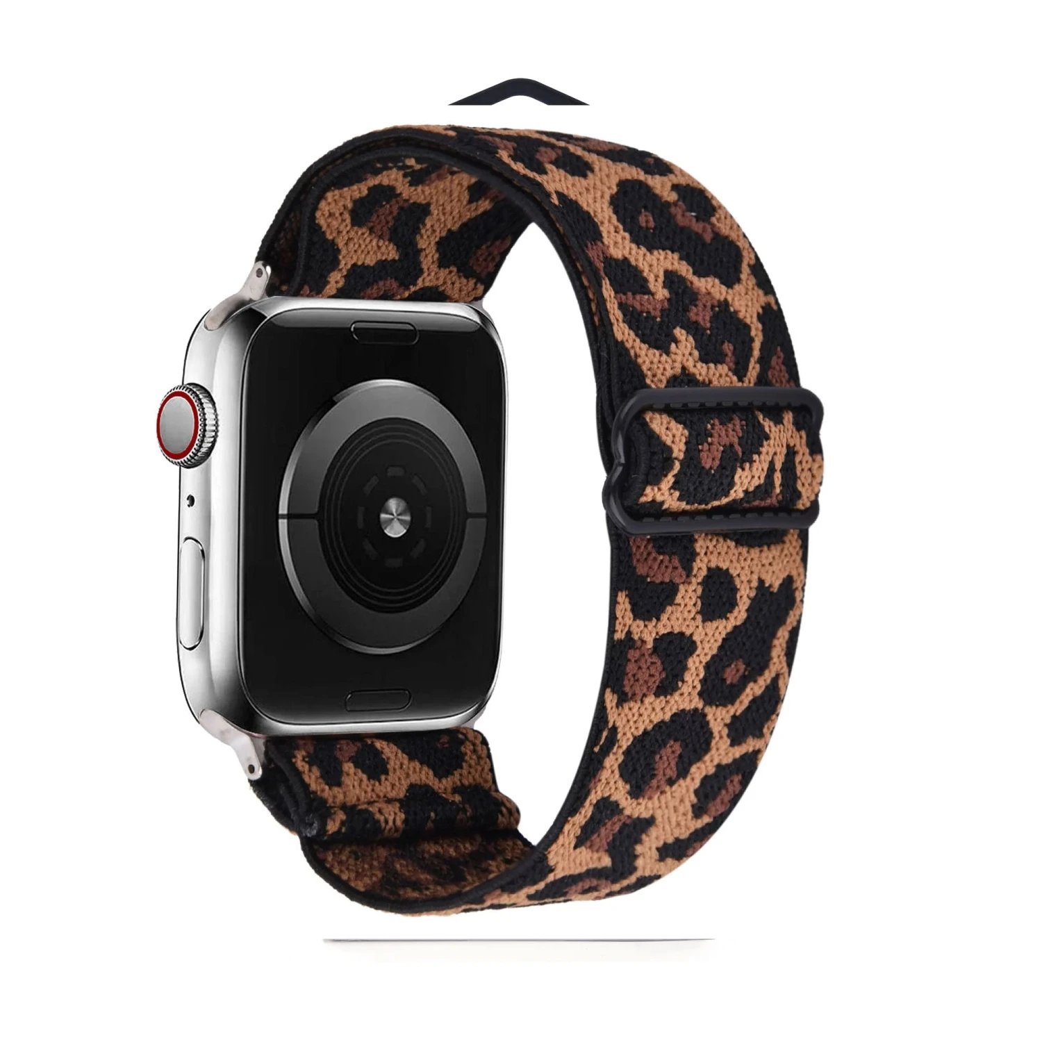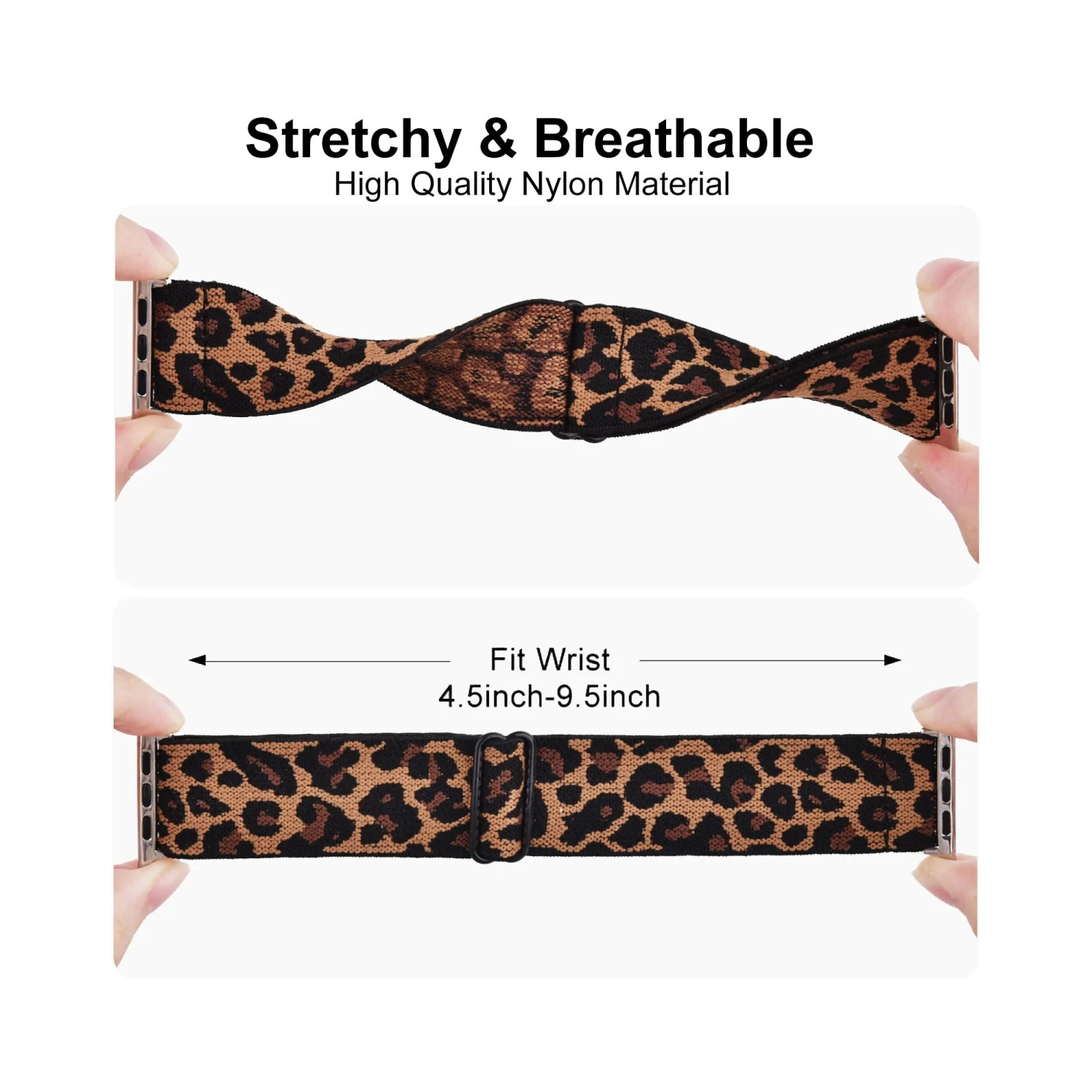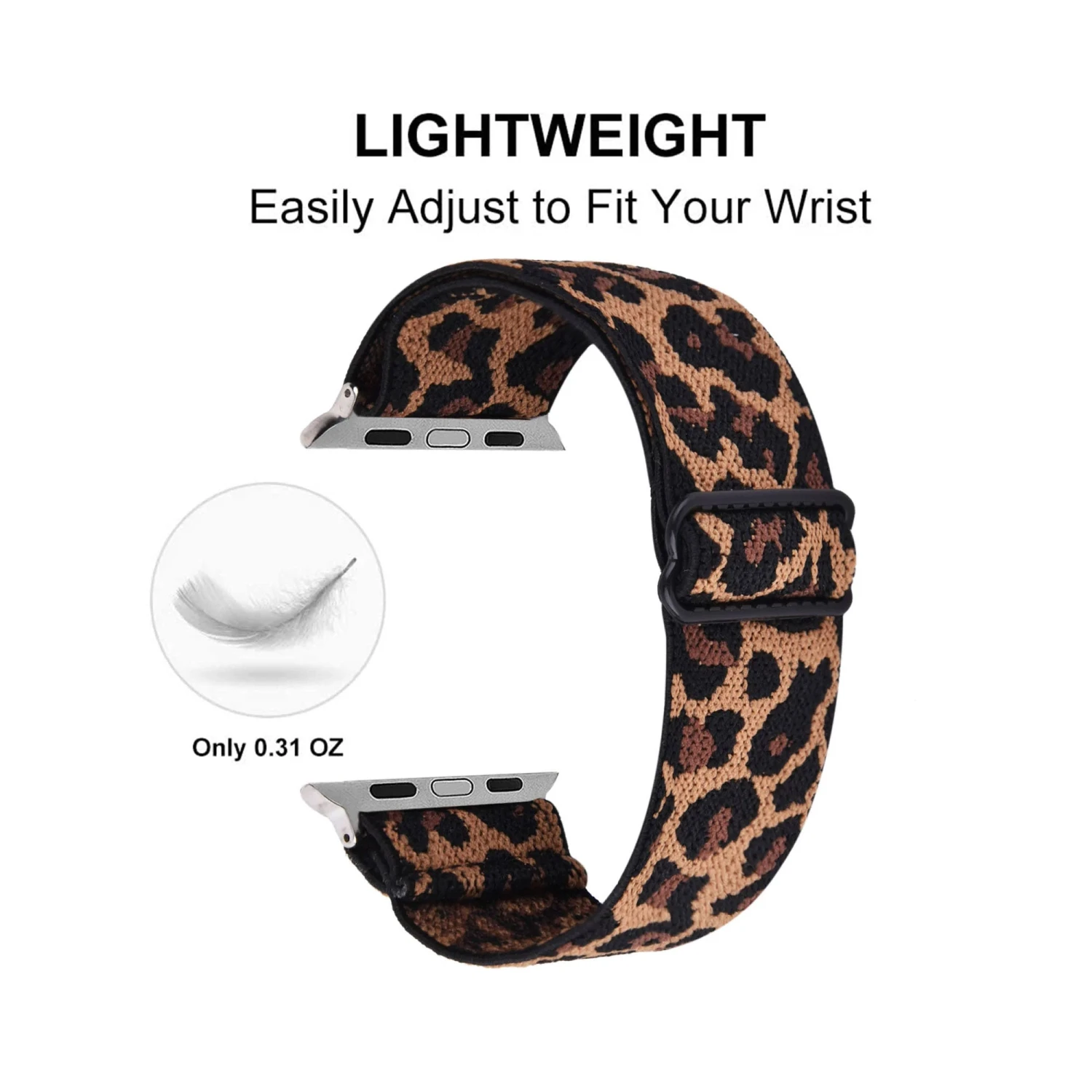 Worryfree Gadgets Nylon Leopard Print Stretchy Band Compatible with Apple Watch Band Ultra Series 8 Series 7 6 5 4 3 2 1 SE and iWatch 38mm 40mm 41mm, 42mm 44mm 45mm