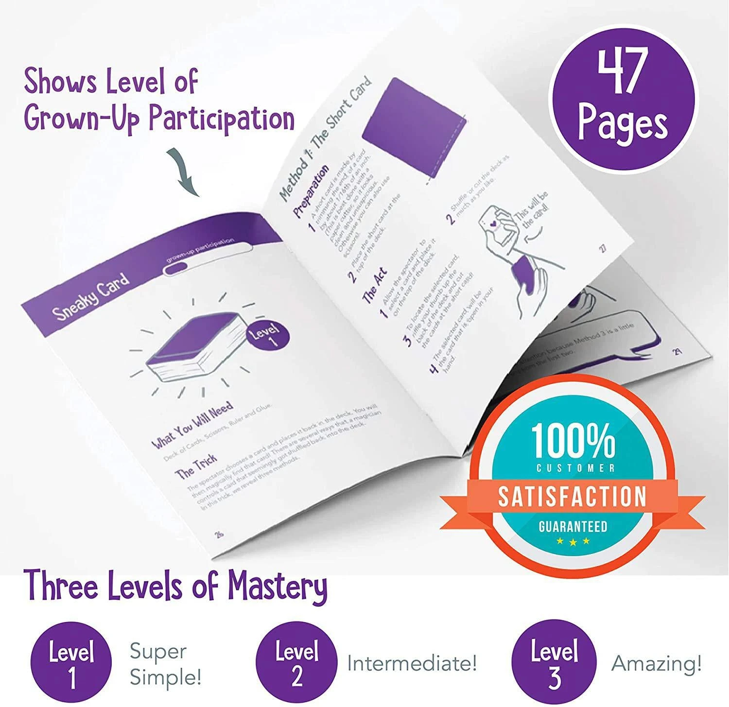 - MAKES THE PERFECT GIFT FOR YOUR LITTLE MAGICIAN – With over 8 props, a deck of cards, and a booklet with different skill levels, your children will always be entertained and eager to learn more as they progress.