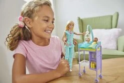 Barbie Rhythmic Gymnast Blonde Doll With Colorful Metallic Leotard, 2 Clubs & Ribbon Accessory