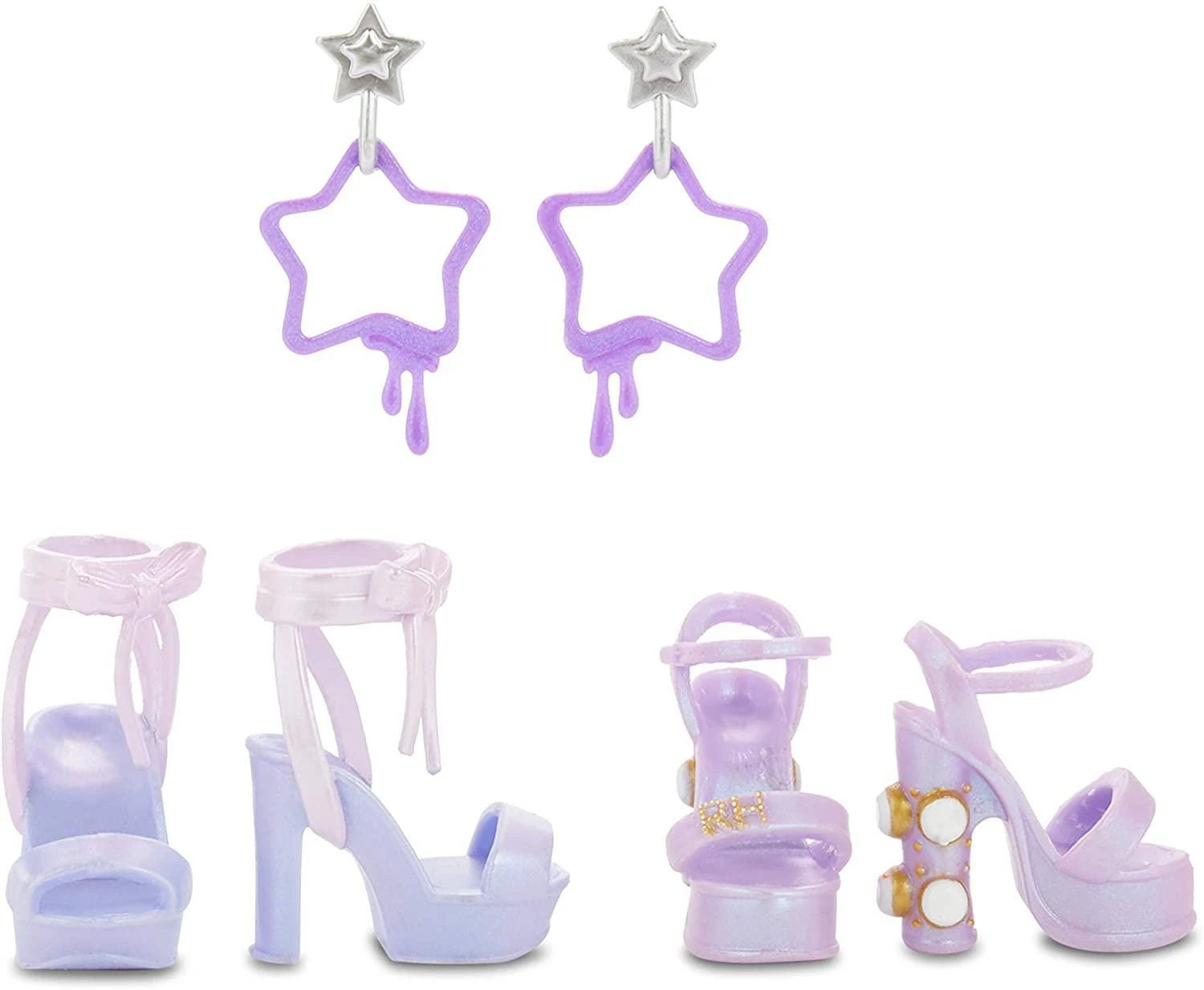- Violet has glam, luxe style because she’s always in the spotlight. She comes with two red-carpet-ready dresses, a faux fur coat, a jacket and showstopping heels.