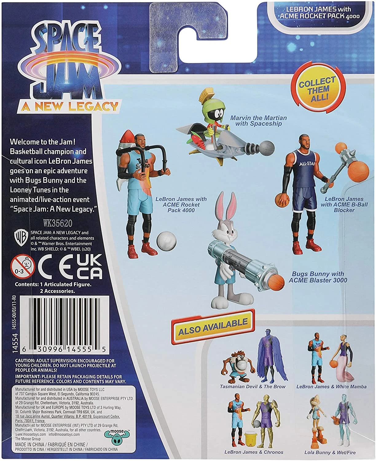 - LeBron comes with an ACME B-Ball Blocker and Basketball accessory.