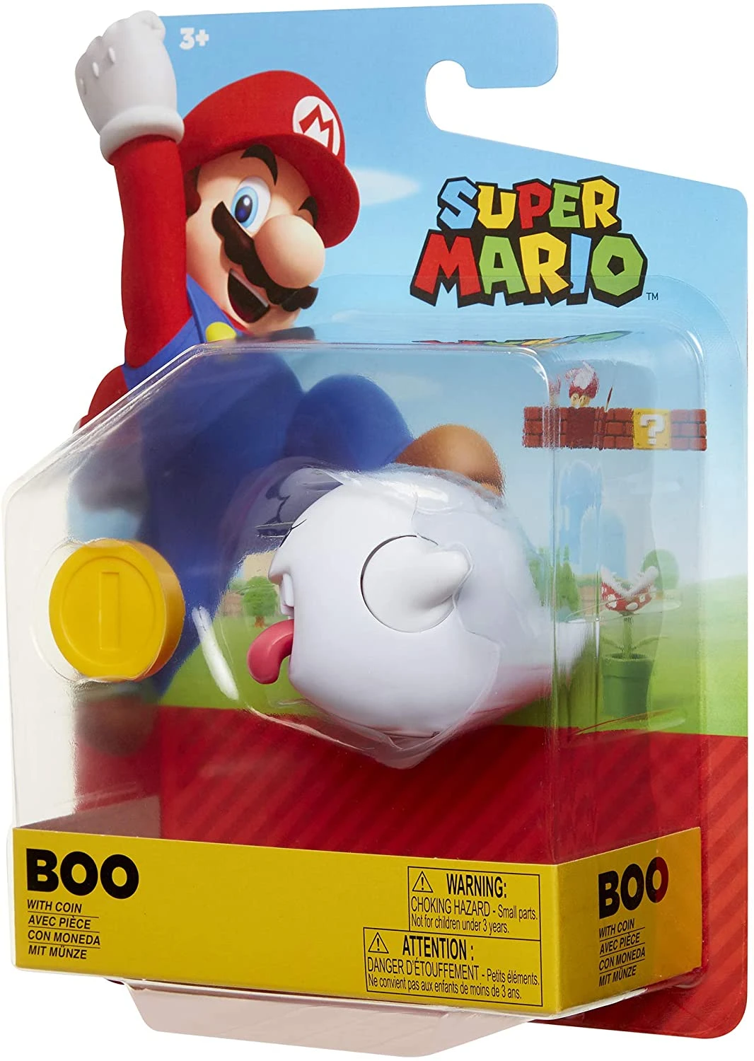 SUPER MARIO Action Figure 4 Inch Boo Collectible Toy with Coin Accessory