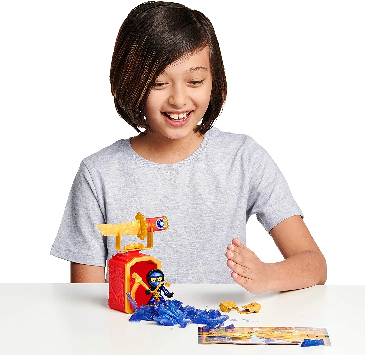 Discover the Land of the Ninja with Treasure X Ninja Gold! Take on 10 Levels of Adventure and try to find Real Gold Dipped Treasure! Begin your unboxing journey by creating your Power Sword. Use the Sword to slice open the seal and carve away the cool elemental wax to save your Ninja Treasure Hunter! Now it’s time to chop the block to reveal your hidden Treasure inside! Can you master all six Elements of the Land of the Ninja and will you find real Gold dipped treasure? Place your Treasure Medallion into your Power Sword’s handle and display your Sword with your Treasure Hunter on his Stand!